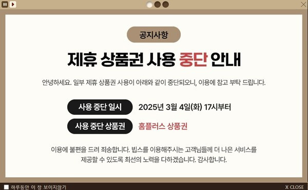 상품권 사용 중단의 이유